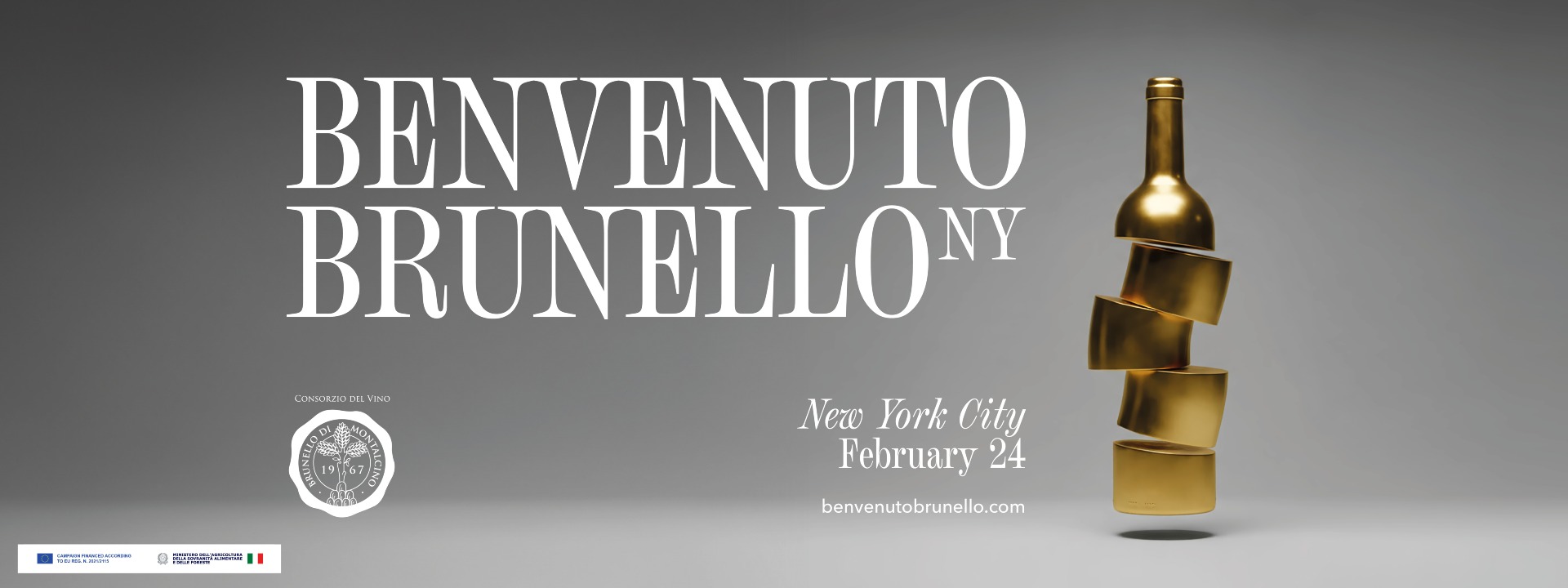 On behalf of the Consorzio del Vino Brunello di Montalcino, we are honored to invite you to Benvenuto Brunello New York, an unforgettable event dedicated to one of Italy's most prestigious wines—Brunello di Montalcino.